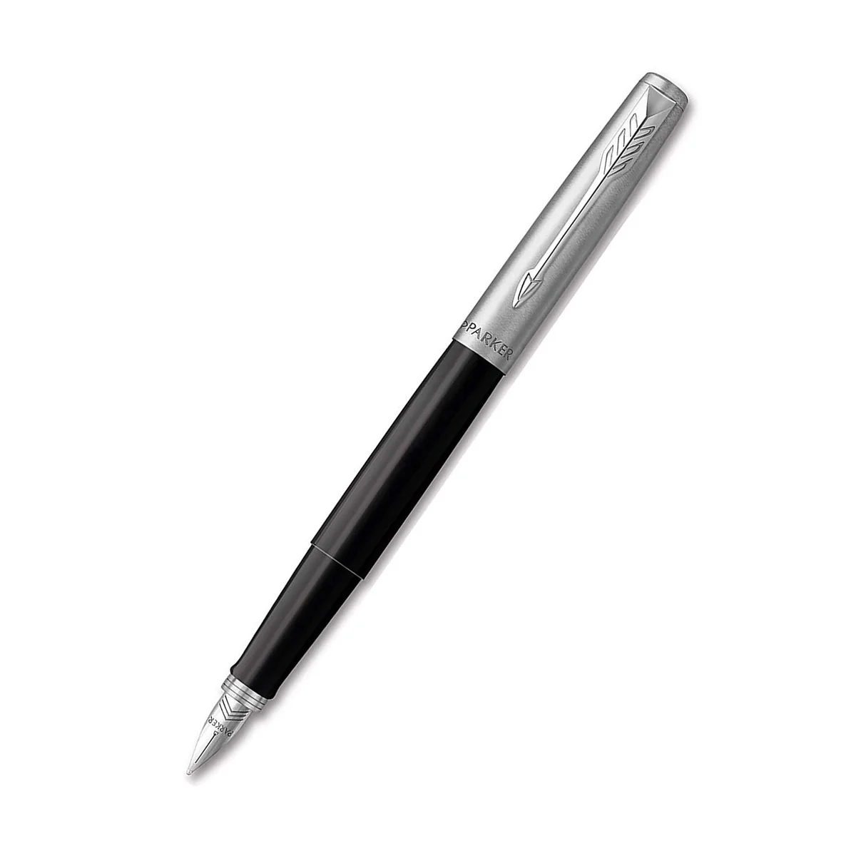 Parker Jotter Fountain Pen in Black. Combining timeless design with modern functionality, this elegant fountain pen offers a smooth and refined writing experience. Its sleek black finish and stainless steel accents provide a sophisticated look, making it perfect for professionals and pen enthusiasts. The high-quality nib ensures precise and effortless ink flow, enhancing your handwriting with every stroke. Ideal for daily use or as a distinguished gift, the Parker Jotter Fountain Pen embodies the perfect blend of style and performance.
